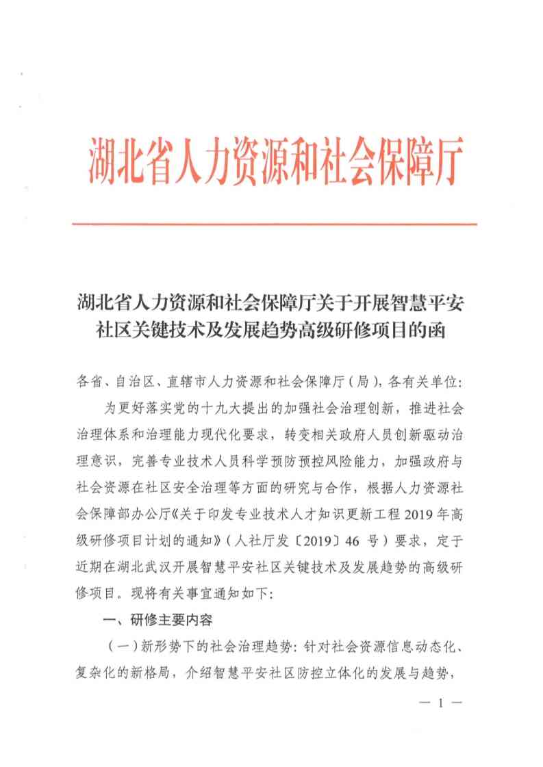 关于开展智慧平安社区关键技术及发展趋势高级研修项目的函