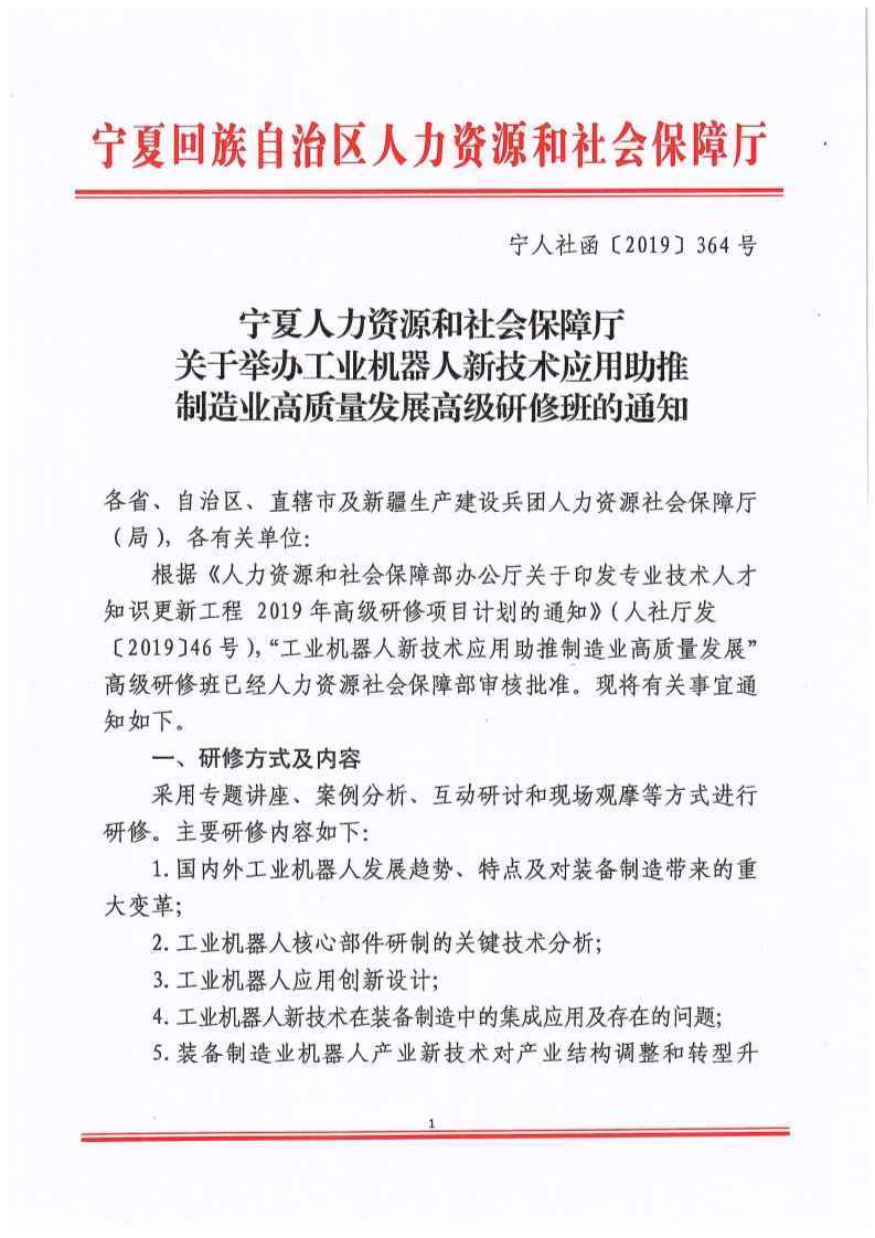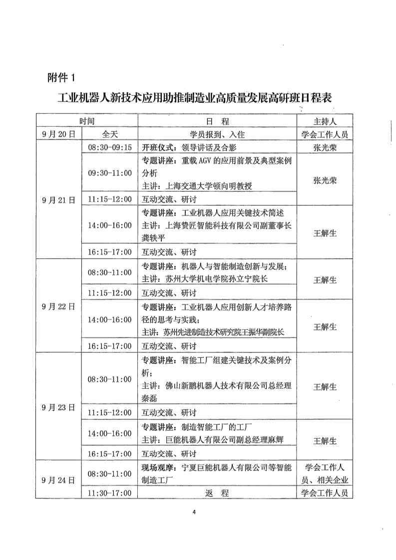关于举办工业机器人新技术应用助推制造业高质量发展高级研修班的通知